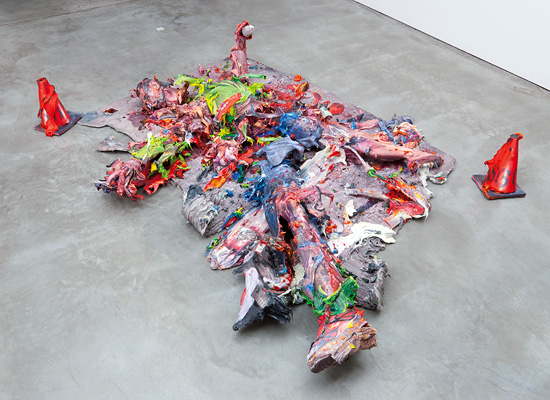 Paint-Fuck-film-kill-itself-Paintant, 2009 pigmentierte Tinte auf Leinwand, Aluminium, Alkydfarbe, Silikon, 56 x 102 x 142 cm