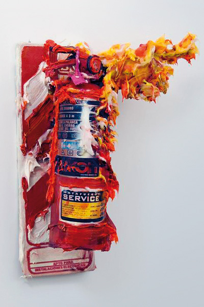 Fire Extinguisher Paintant, 2008 Pigmented ink on canvas, aluminum, alkyd paint and silicone, 91 x 106 x 41 cm